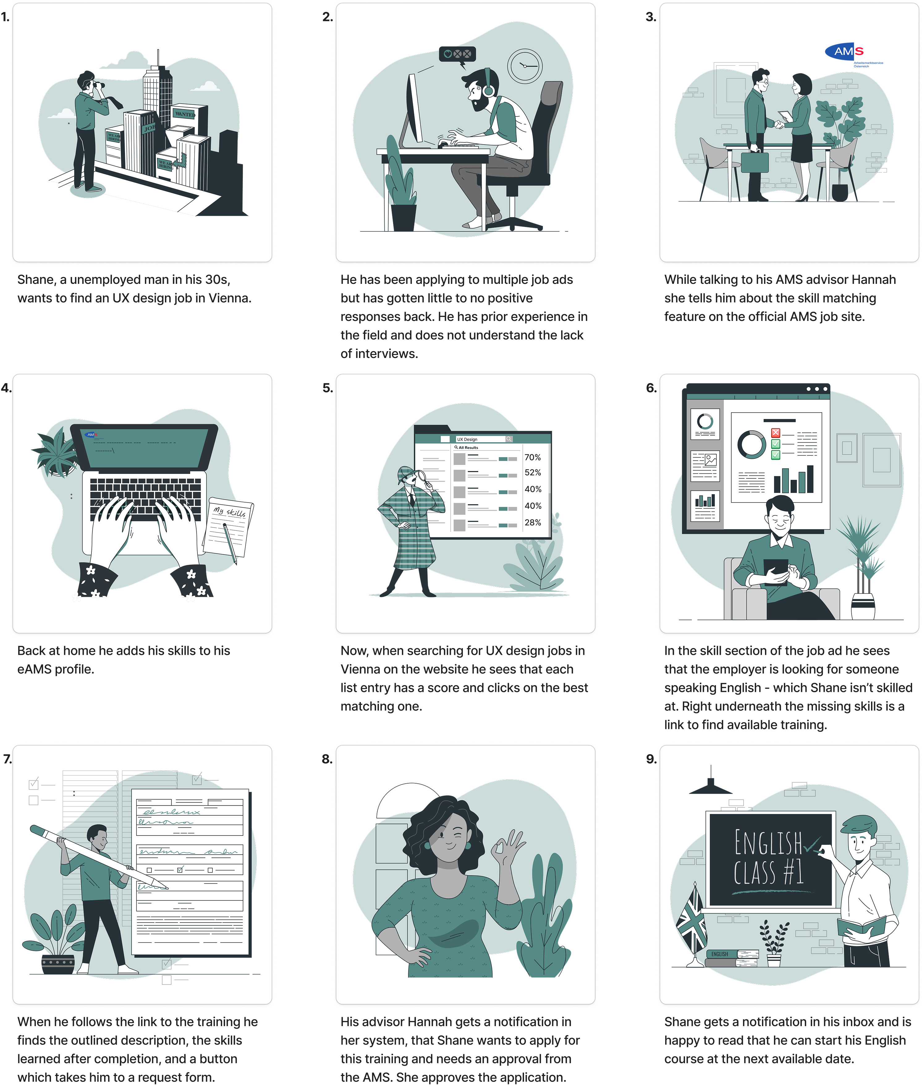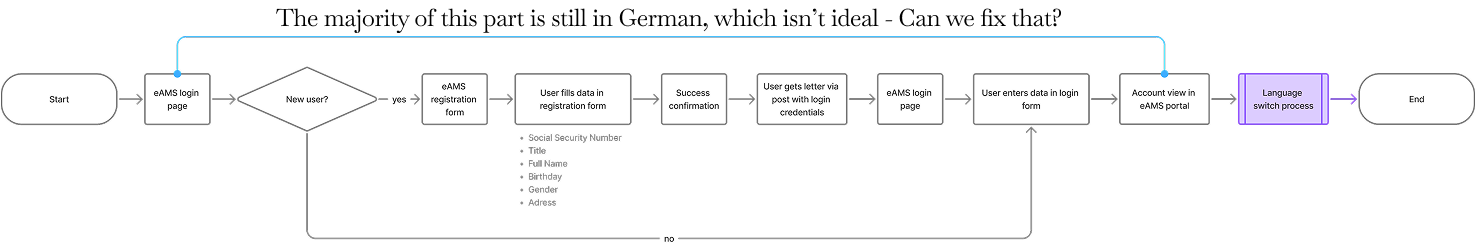 Previous research uncovered that users depended on other people to help them understand AMS services. Users without assistance experienced problems using the service. Users who were not fluent in German also had to use third-party translation software, which didn’t always work due to technical issues with the eAMS site and service.